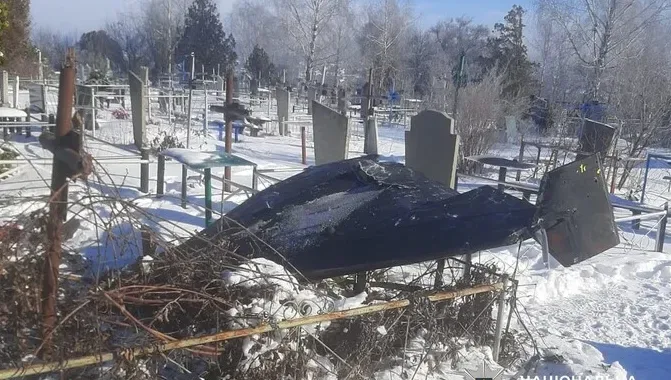 Вибухотехніки знищили бойову частину російського безпілотника, що впав на кладовище в Кіровоградській області.
