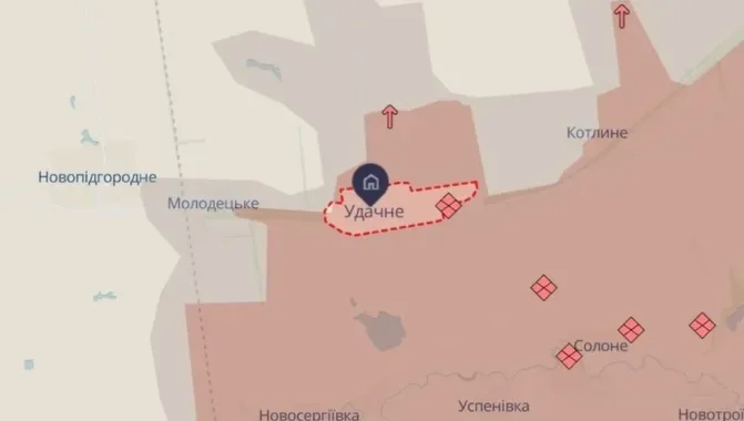 Російські війська продовжують наступ у Донецькій області, зокрема, на Покровському напрямку. OSINT-проєкт DeepState повідомляє про досягнення на території села Удачне.